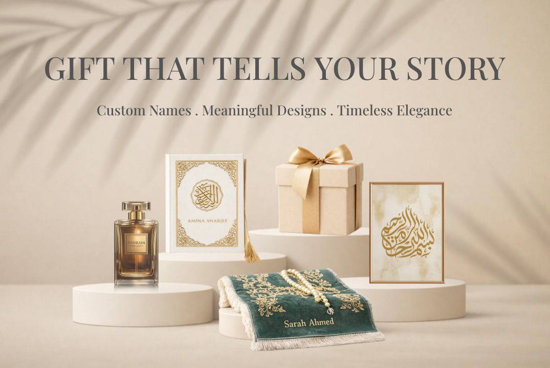 Explore our exclusive collection of personalized name prayer mats, foldable prayer mats with backrest, personalized water bottles, mugs, pillows, Frames ,bed runners, table runners, keychains, perfumes, hijabs, and more! Shop unique, meaningful gifts tailored just for you—only at Zahrain Mart